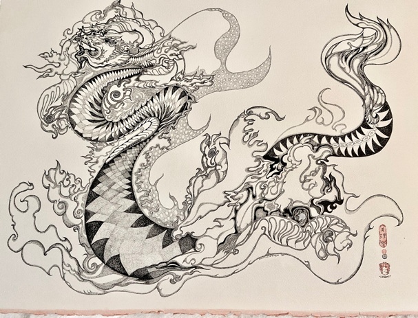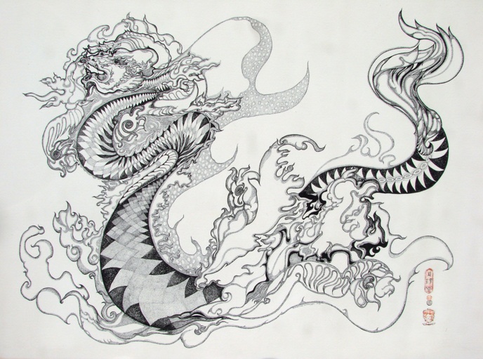 India Ink on paper / The design is achieved by applying the ink with a stippling technique